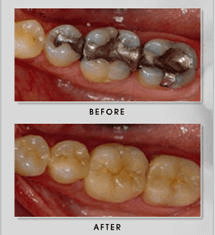 A carious / cavitated tooth can now be filled with composite resin giving it a natural look.